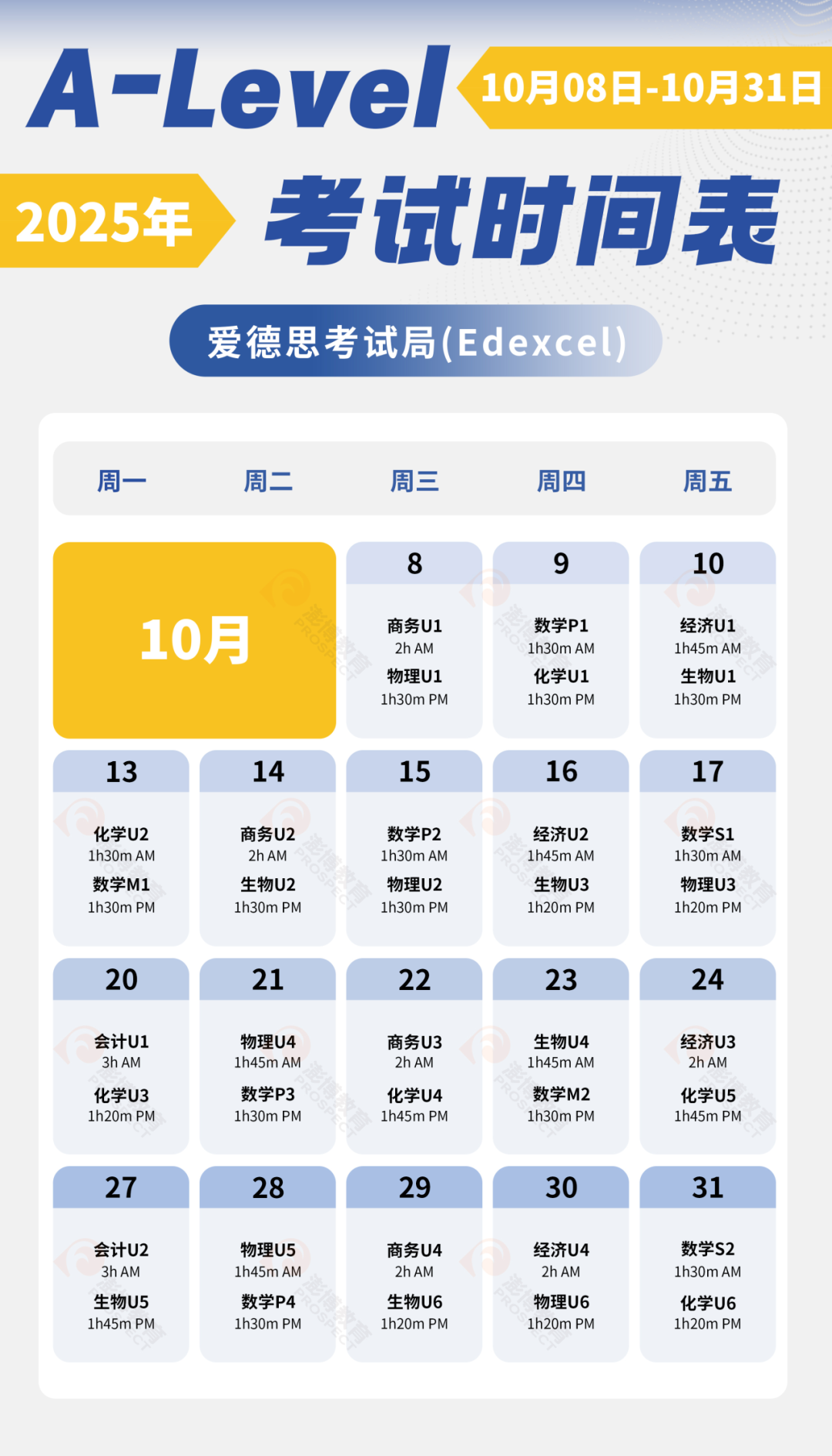 完整的2025年秋季A-Level考试时间表为大家整理好啦【建议保存】。考生务必提前确认每科的具体考试时间,做好规划。