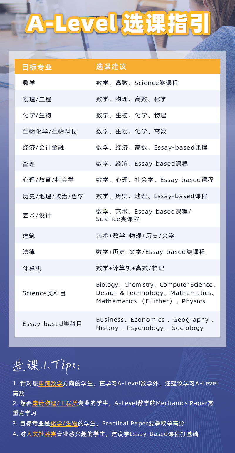 那些竞争力强的大学都很喜欢挑战高难度 A-level 科目的学生,选择这些科目能很好地体现你的学术能力。