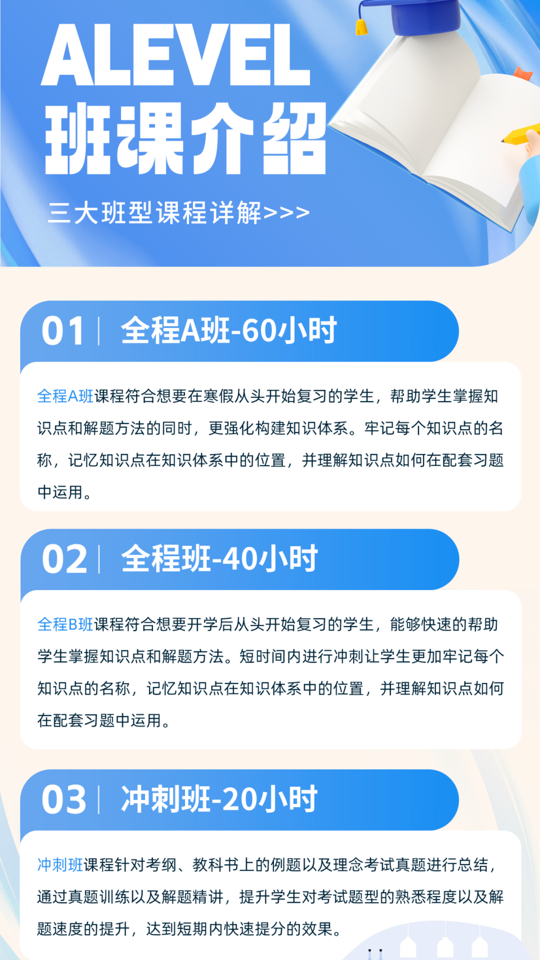 机构教育ALevel辅导班级多样,开设ALevel预习先修班、同步班、全程班以及备考冲刺班,脱产等多种班型。