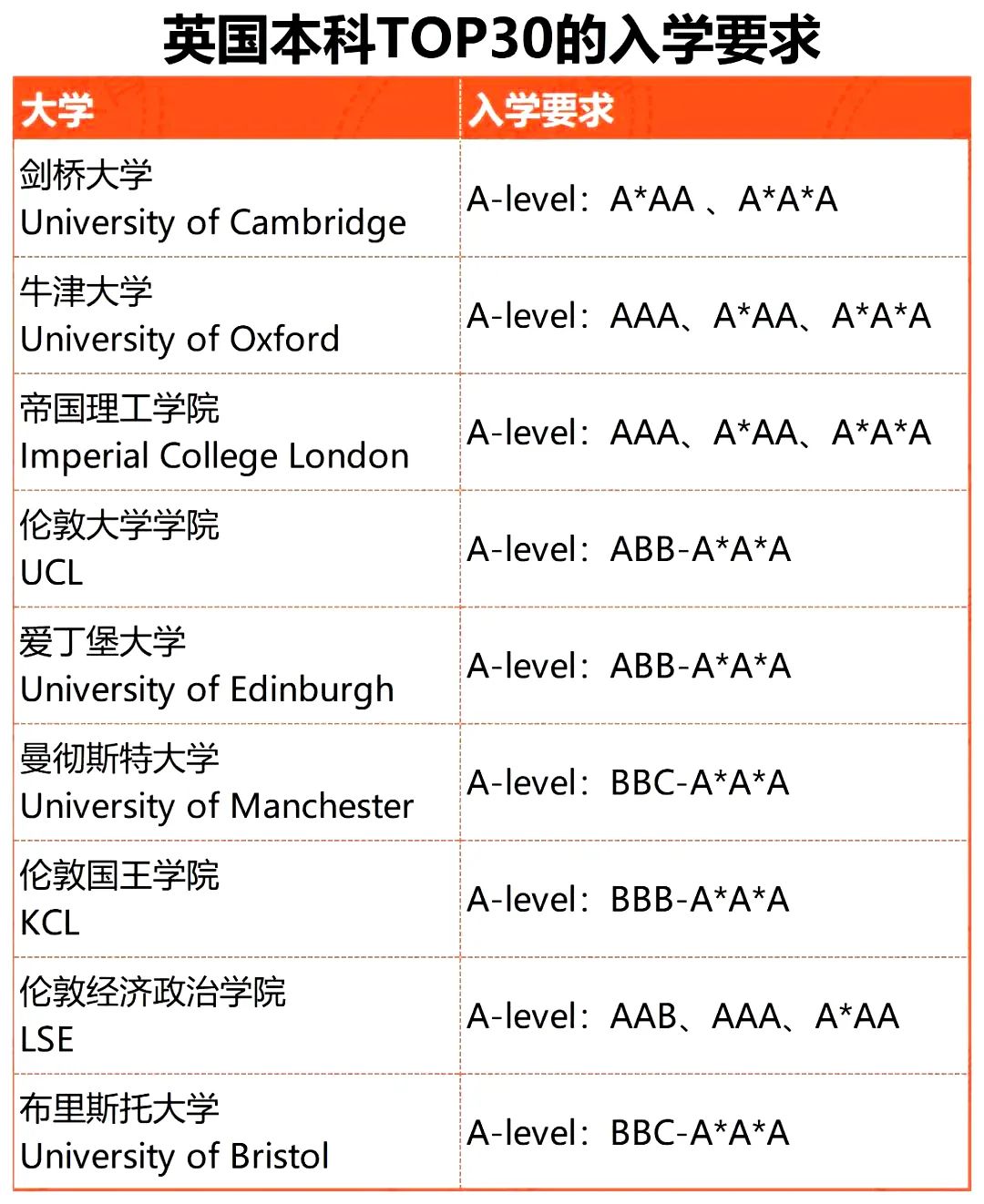 A-Level录取要求
