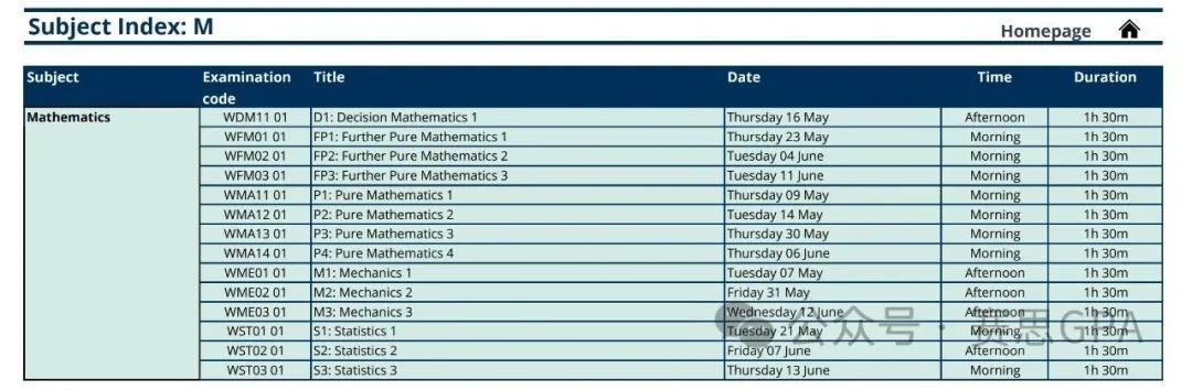 各科目考试时间安排 AS考试时间表