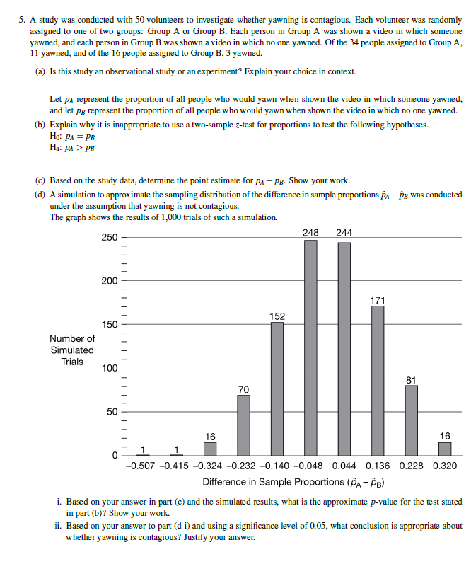 💡055. Multi-focus考了在simulation的情况下怎样算出p-value,主要考察考生对p-value意义的理解,这类题目以往会放在最后一题,要求考生数点算出面积,但近几年有提前的趋势,例如在选择题中用simulation计算p-value,或出现在前五题中,类似题目如下: