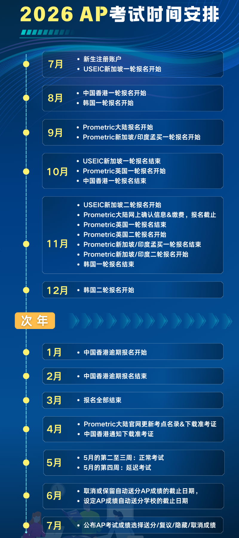 另外,需要提醒参加AP Seminar、AP Research以及AP CSP的考生们,提交作品的截止日期为美东时间2026年4月30日23:59。
