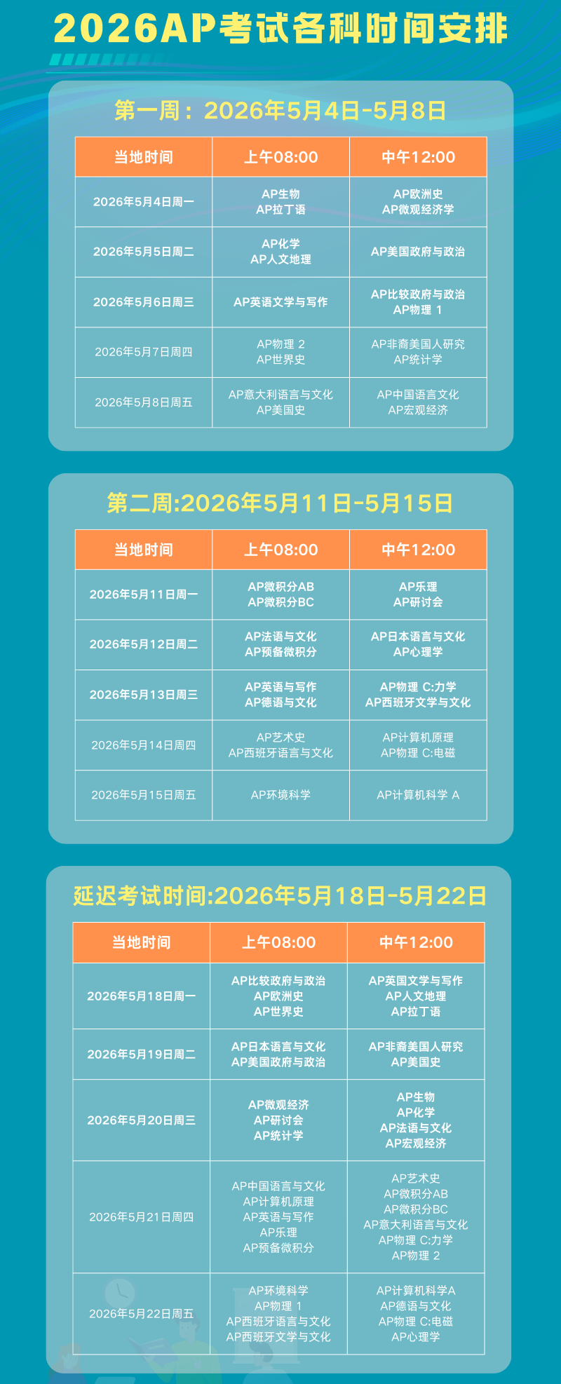 2026年AP考试时间安排