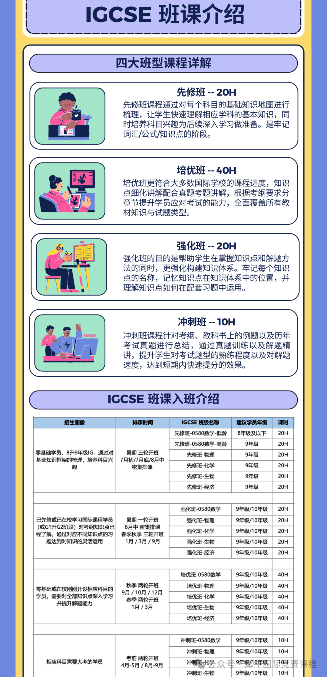 IGCSE 培优班(40h):细化核心考点 + 真题训练,覆盖题型,提升应试能力。