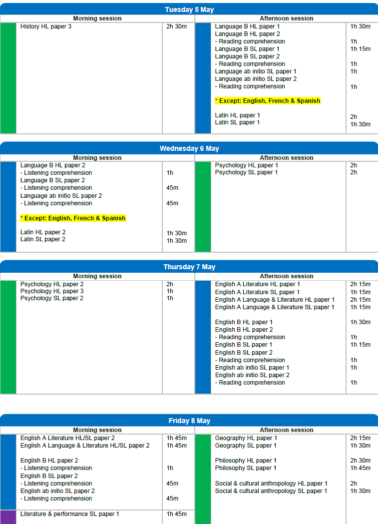 - 外部评估,全球统一命题的闭卷笔试,题型以论述、分析为主;