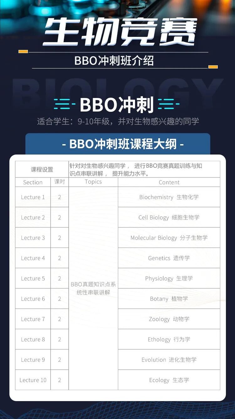 BBO竞赛难就难在范围广,而不是深度深。官方没有明确的考试大纲,内容横跨多个生物学分支,这让孩子很难把握复习的范围。