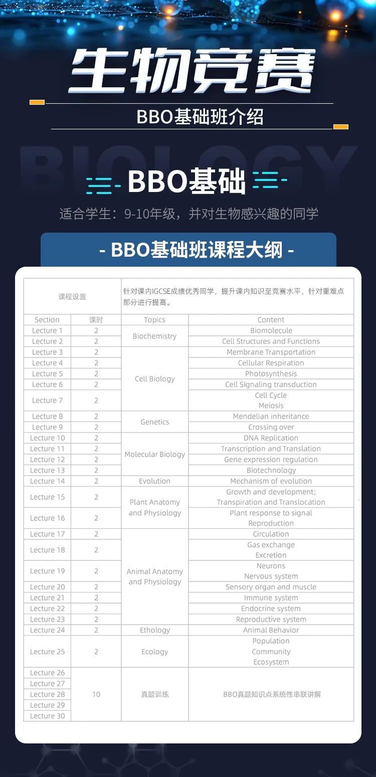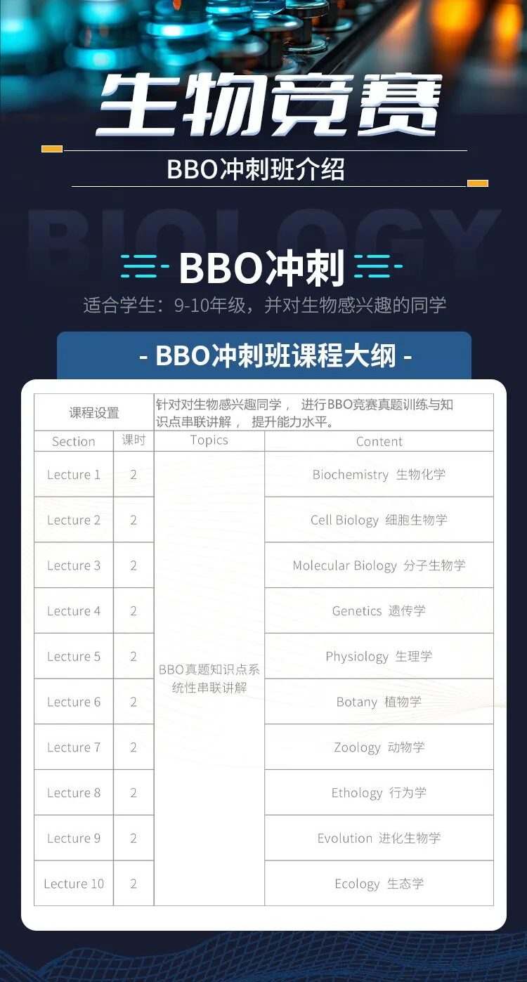 【BBO冲刺班】✅适合对象:9-10年级,对生物学科有浓厚兴趣,计划短期高效备赛的同学。