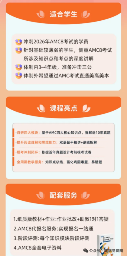 部分题目涉及奥数知识:但整体难度低于AMC8的高阶题目。