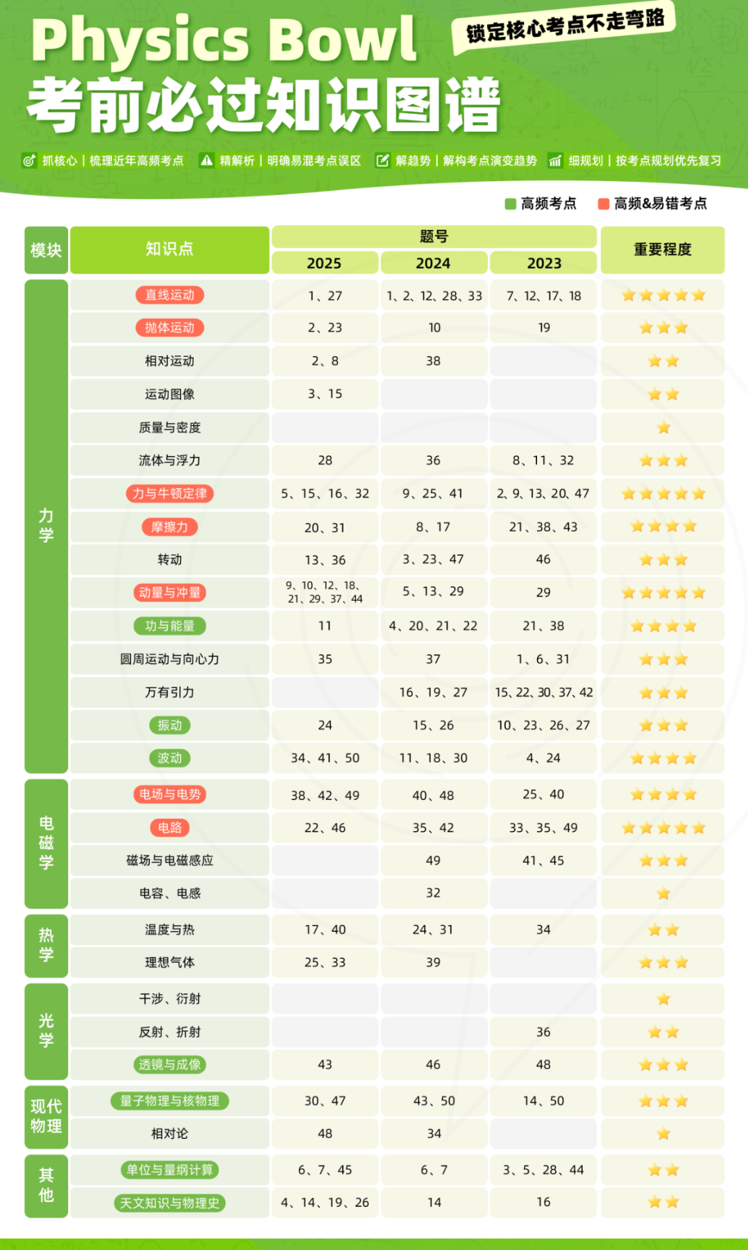 机构物理竞赛教研组整理了物理碗近三年考点知识图谱,涵盖全部知识点、高频&易错考点,以及其在考试中的出题位置👇