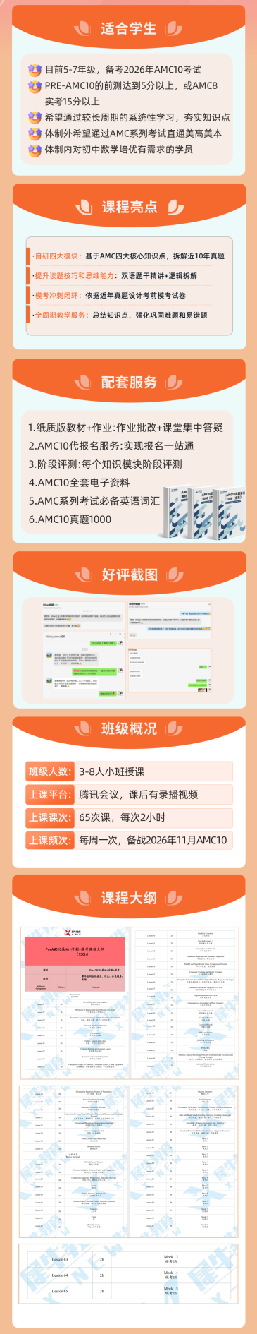 AMC10冲刺阶段:配合AMC10竞赛历年真题,巩固高频考点和重难点,冲刺奖项