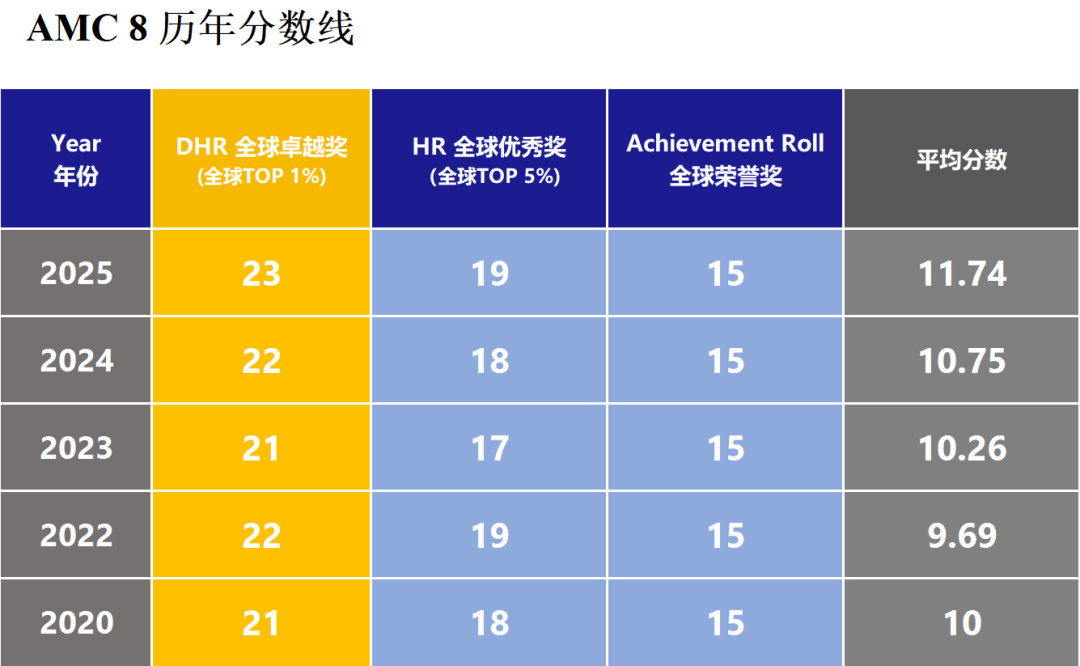 近5年AMC8分数线趋势图👉(2020-2025年)