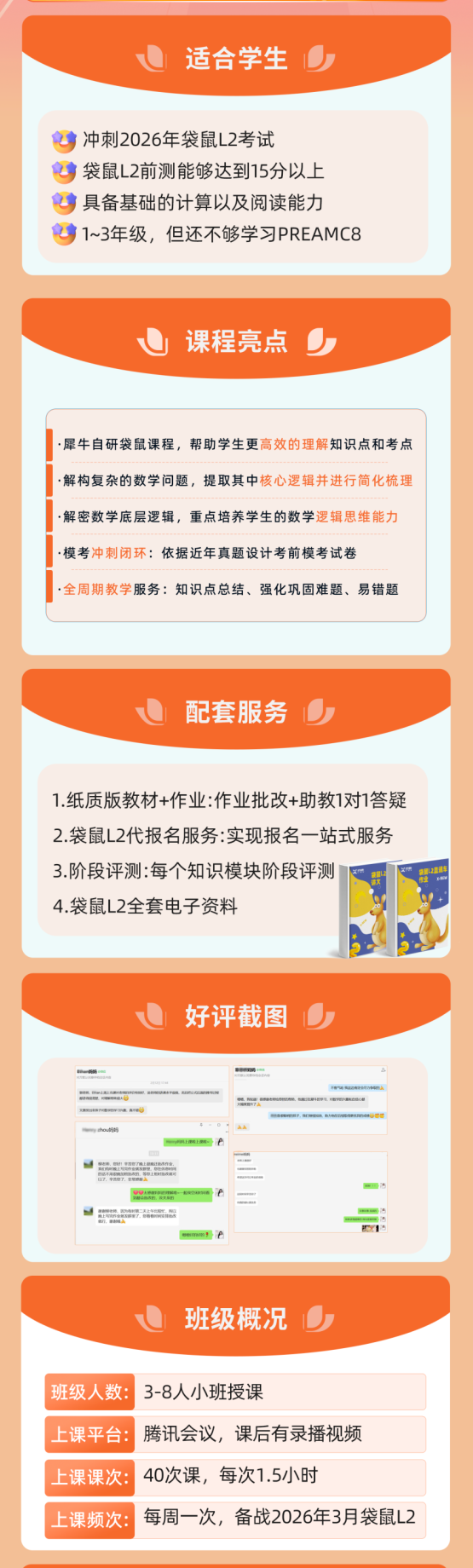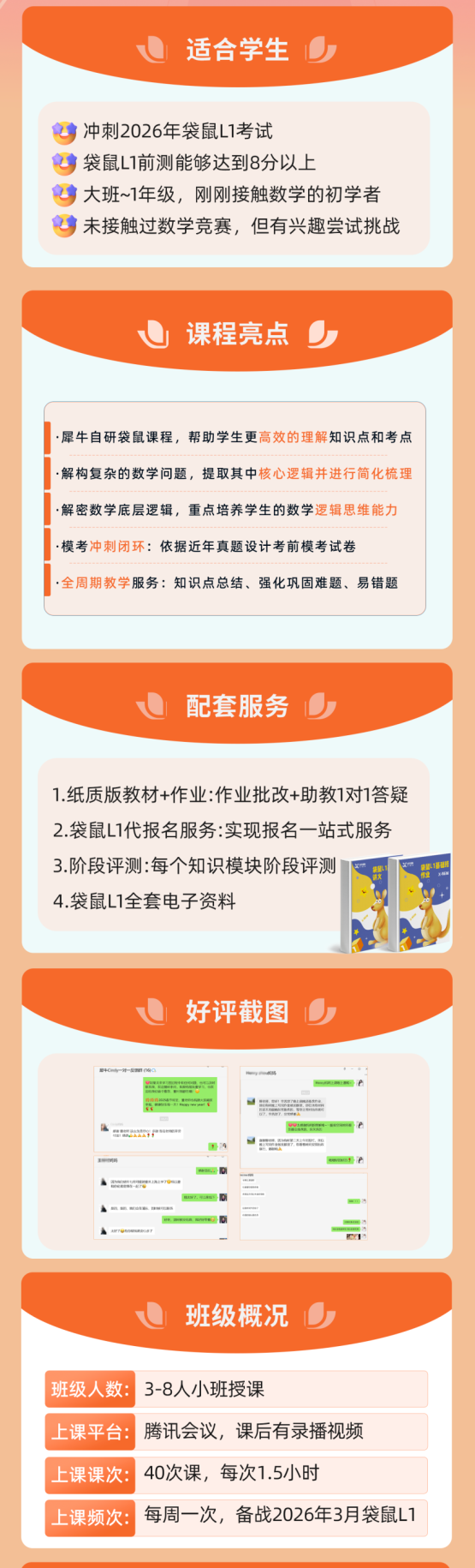 袋鼠数学主要考察的题型:图形类、运算类、逻辑推理类、应用类和趣题五大类,注重数学思维与实际问题解决能力。