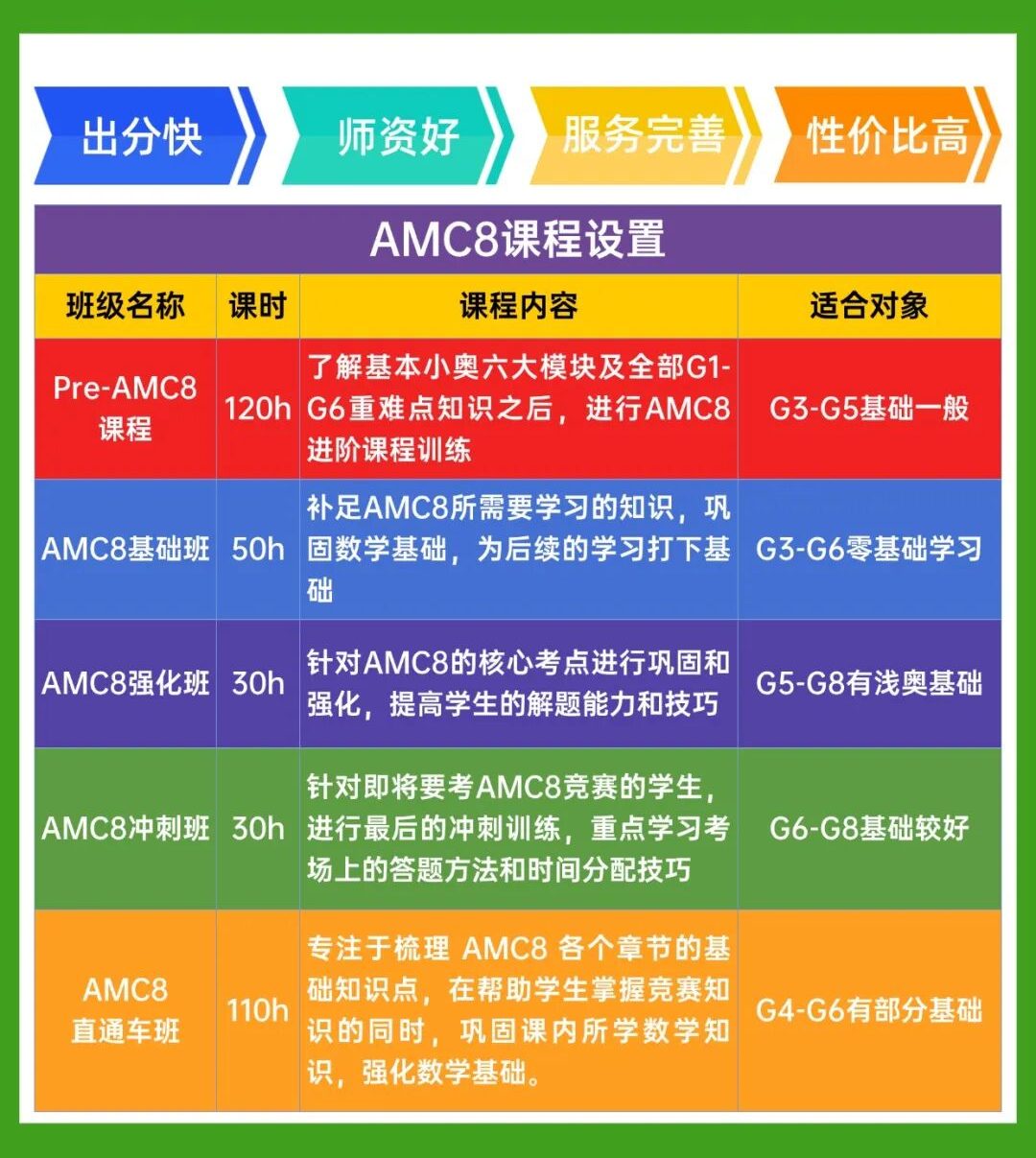 3年级:由于AMC8数学竞赛涉及的知识点多,难度也大,建议先把没学到的知识点补齐,可以先再去接触,可以通过Pre AMC8课程夯实基础知识点。