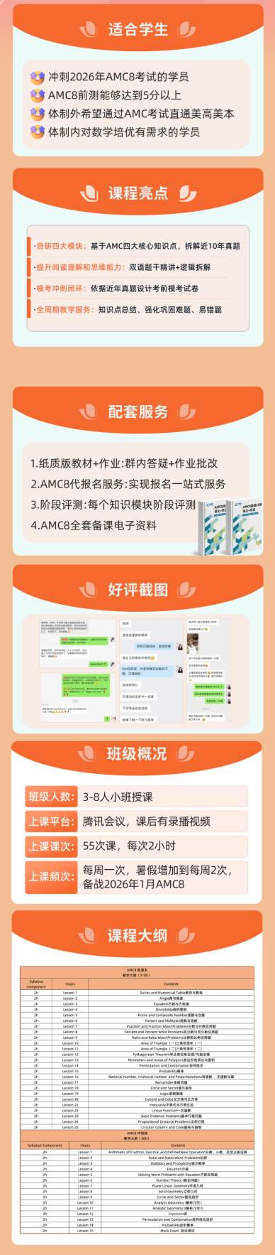 🚩课程大纲:AMC8知识点全覆盖,考前模拟,技巧点拨,冲刺高分