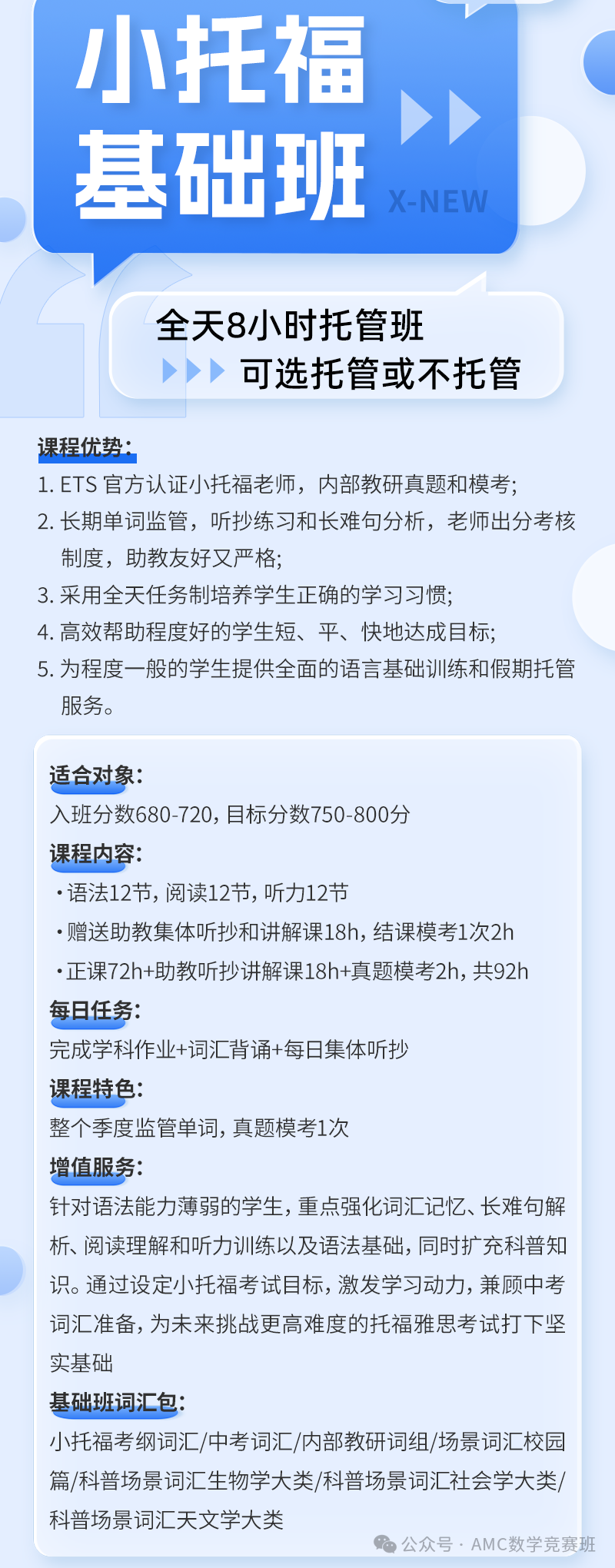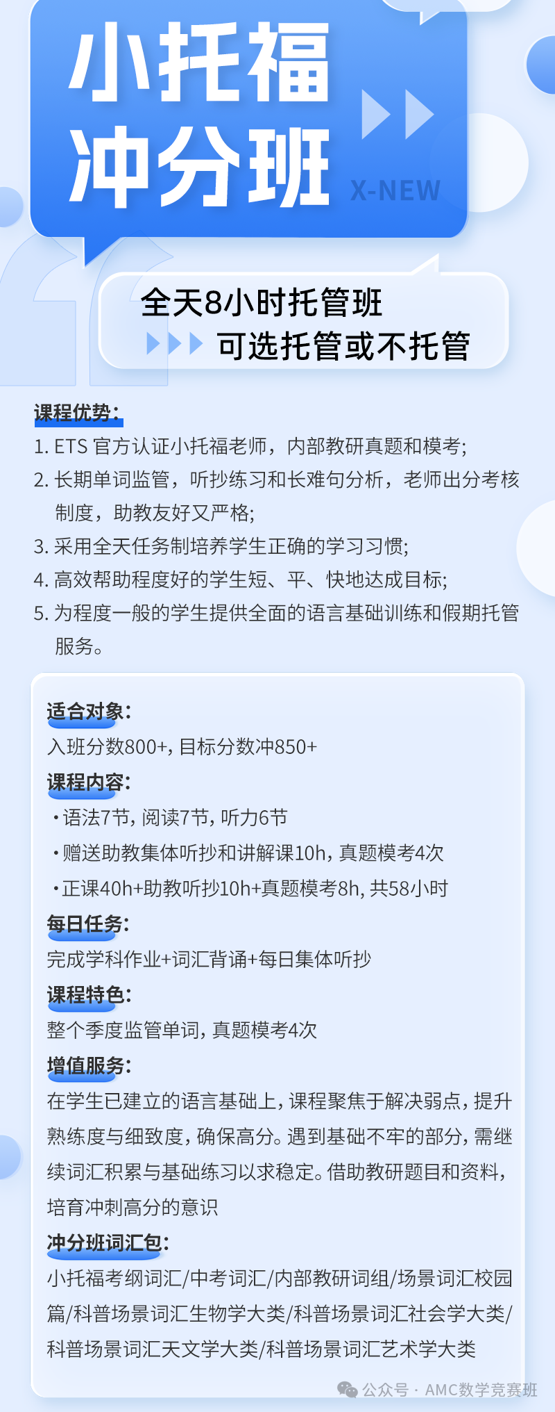 别再为这些问题焦虑,针对三公升学需求,机构全新升级的 AMC8 数学竞赛 + 小托福考试培训秋季班已上线!