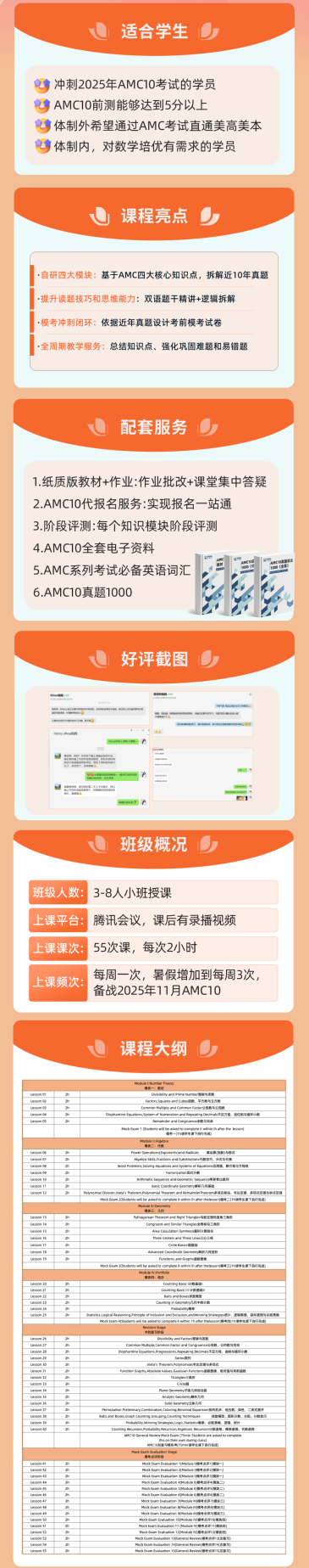 AMC10基础班:侧重学习AMC10竞赛各个板块知识点。