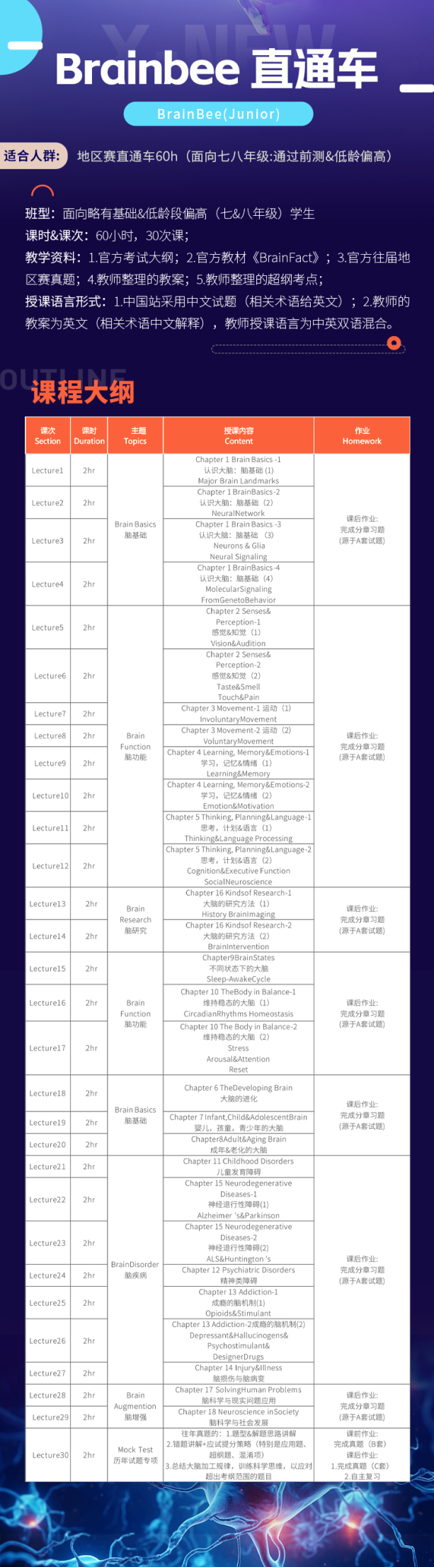 Brain Bee低龄组:5-8年级参赛,共60题,每题均1分