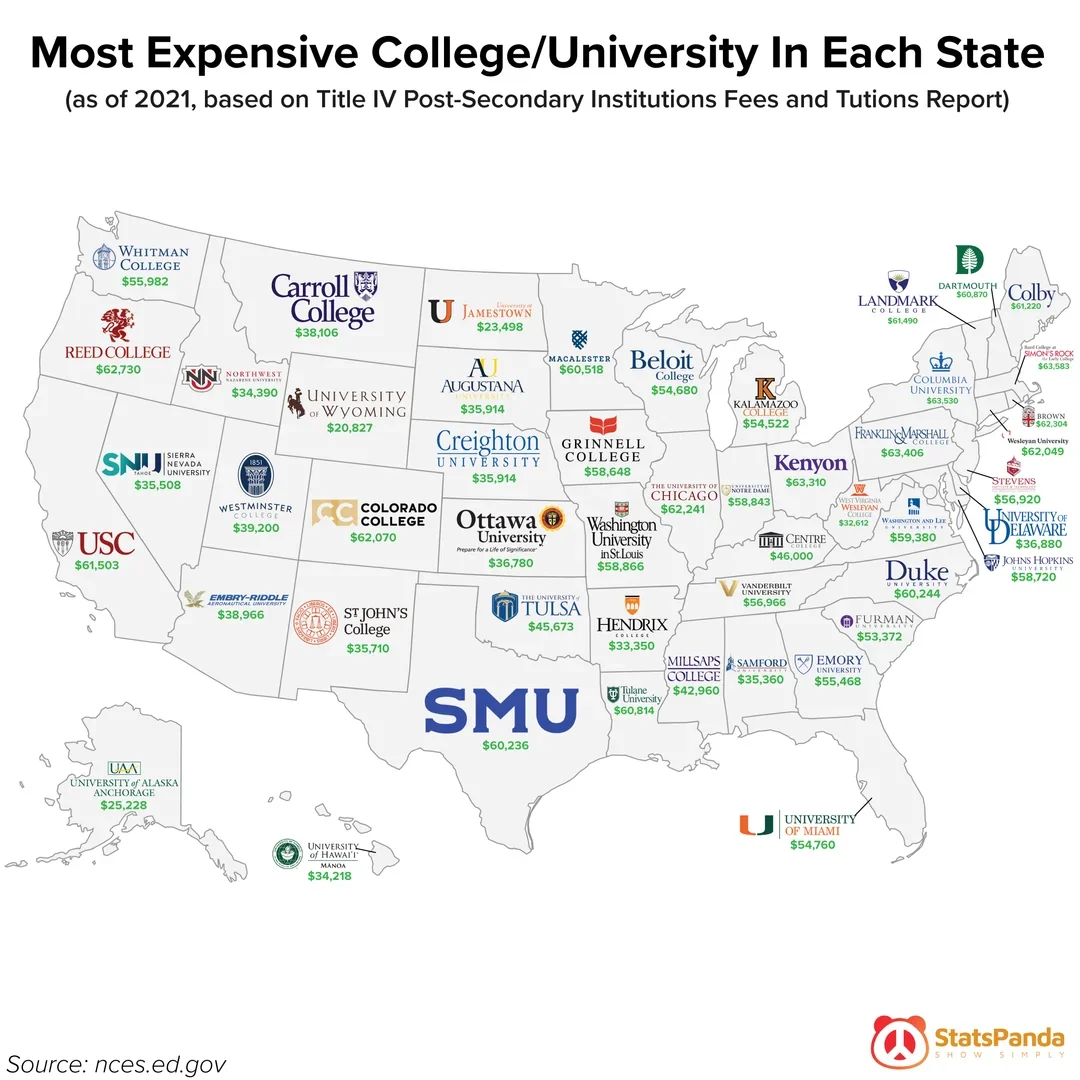 天价学费地图!美国各州最贵大学盘点