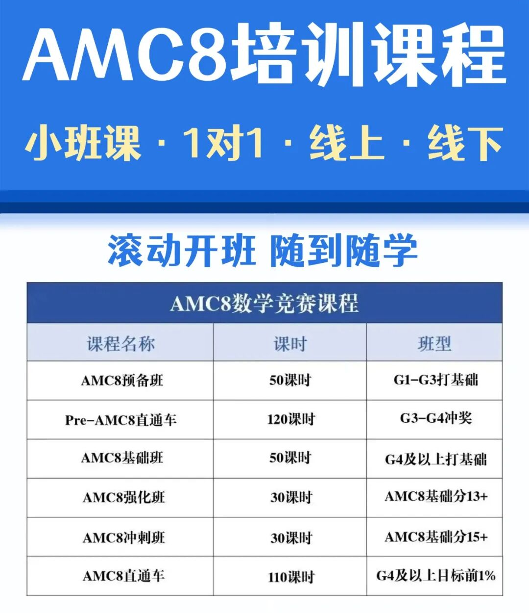 ✅AMC8竞赛优享班:适合有一点基础,完善AMC8竞赛基础考试,更可以完善学生的学习,衔接校内和校外数学的学习