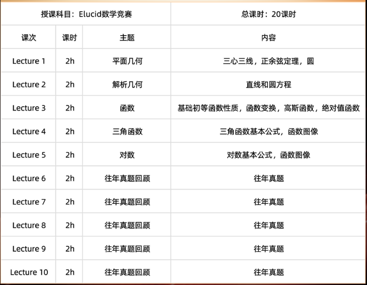 适合学生:G10-G12数学兴趣浓厚、数学思维能力突出的学生