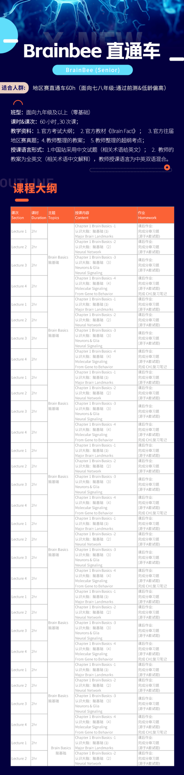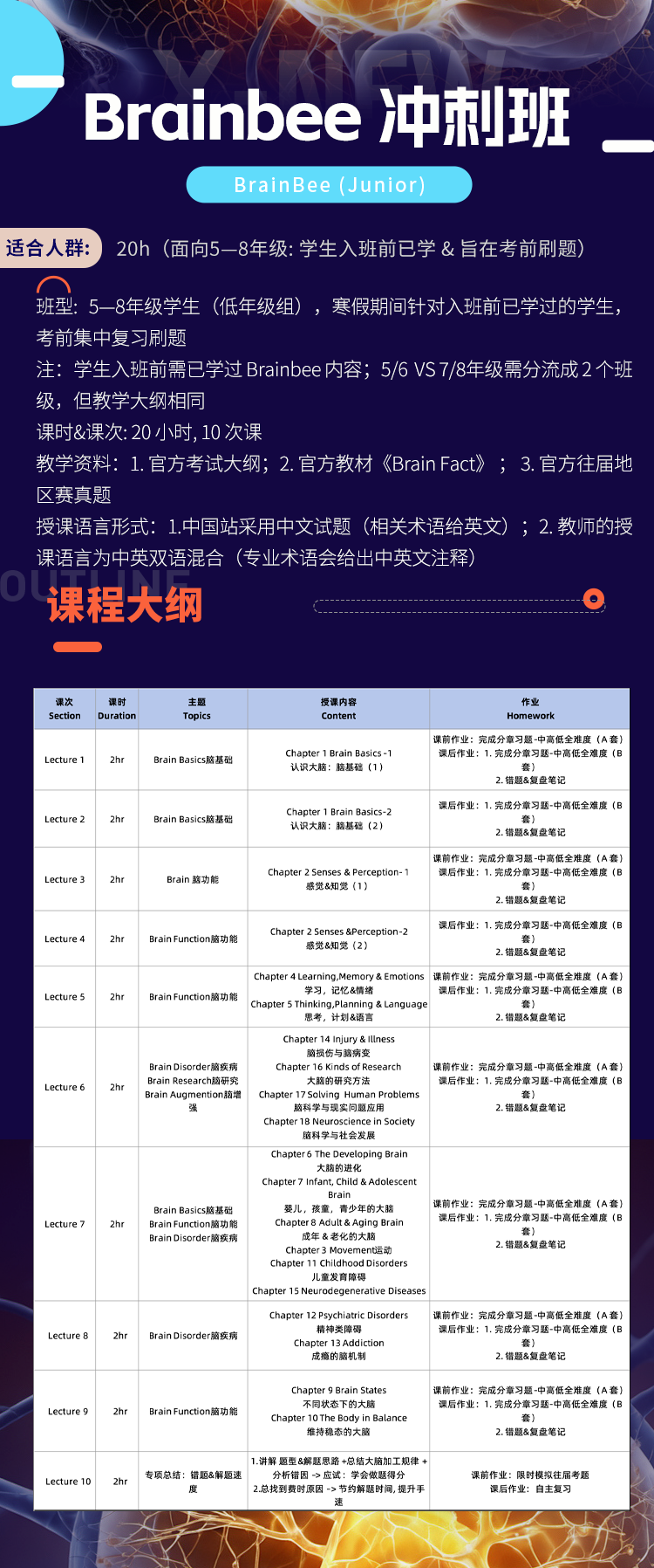 机构Brain Bee培训课程安排
