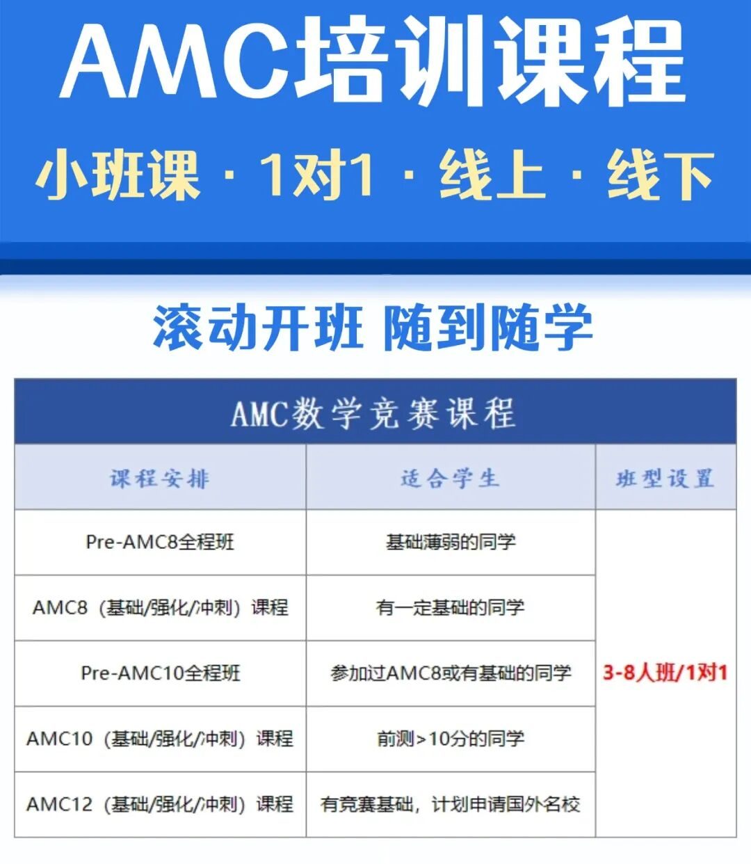 其中数字代表的是参加的年级,如AMC8指8年级及以下学生可参加,AMC10指10年级及以下学生可参加。
