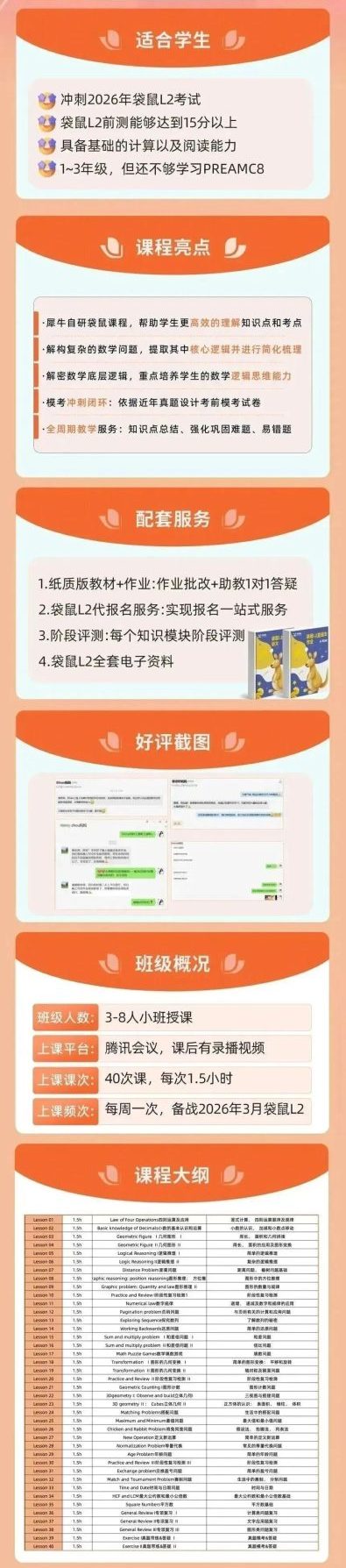 截止时间:2026年袋鼠数学竞赛报名日期2026年3月17日截止,代报名会提前结束。建议尽早报名以避免名额紧张或额外费用。