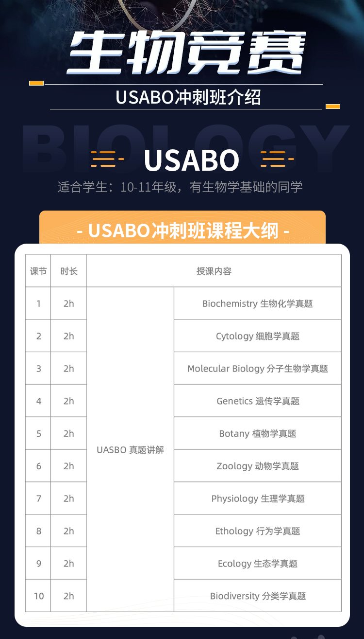 机构特设USABO美国生物奥赛冲刺班,助你把握考前“黄金期”,实现高效超越!