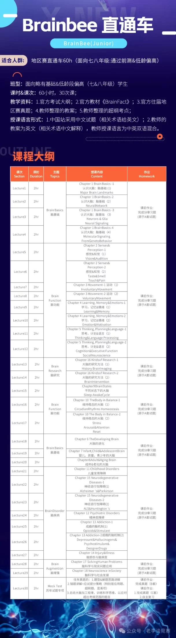机构国际针对BrainBee竞赛开设了不同班型的培训课程,包括BrainBee Junior和BrainBee Senior培训课程,适合不同年级、不同基础的学生学习。