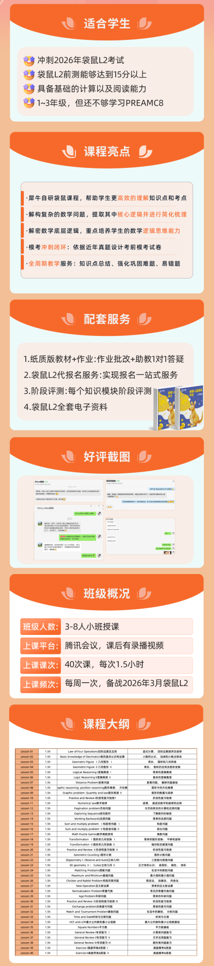 机构开设1-4年级袋鼠L1、L2培训课程(全程班、冲刺班)