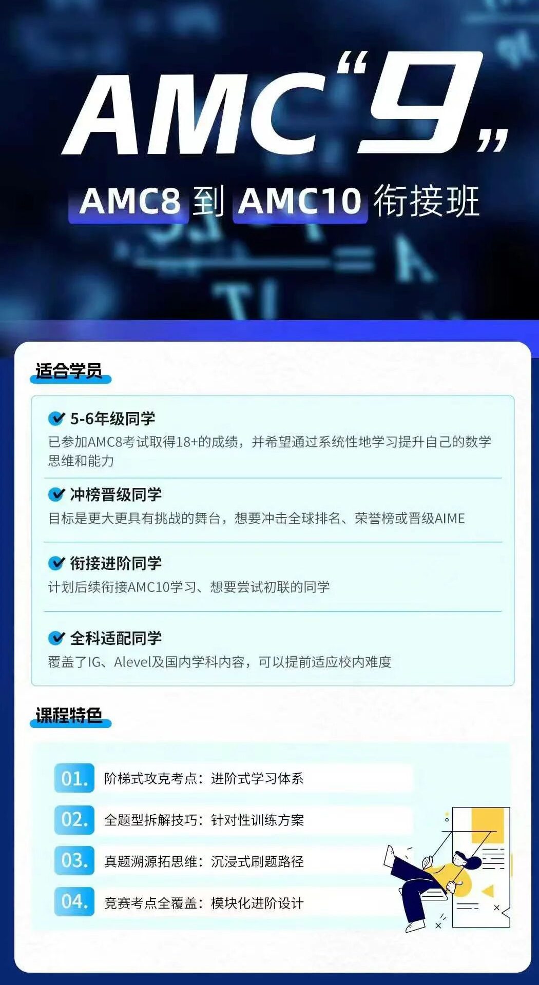机构国际教育专为 AMC8 高分学员打造的AMC “9”衔接班正式上线🔥
