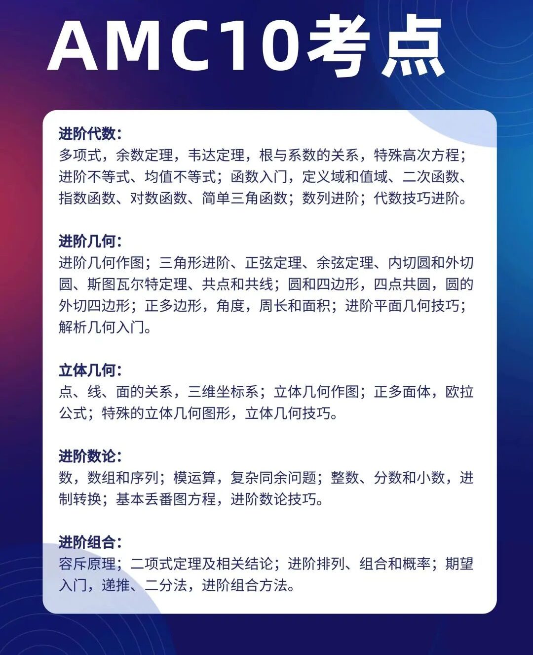 AMC10数学竞赛的核心知识点,基本覆盖了国内初中数学的全部内容,还会少量涉及高中入门知识,比如基础函数、简单排列组合等。