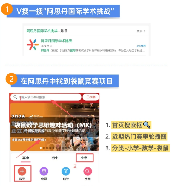 ✅BPHO查分方法1:微信搜索“阿思丹理科测评”小程序