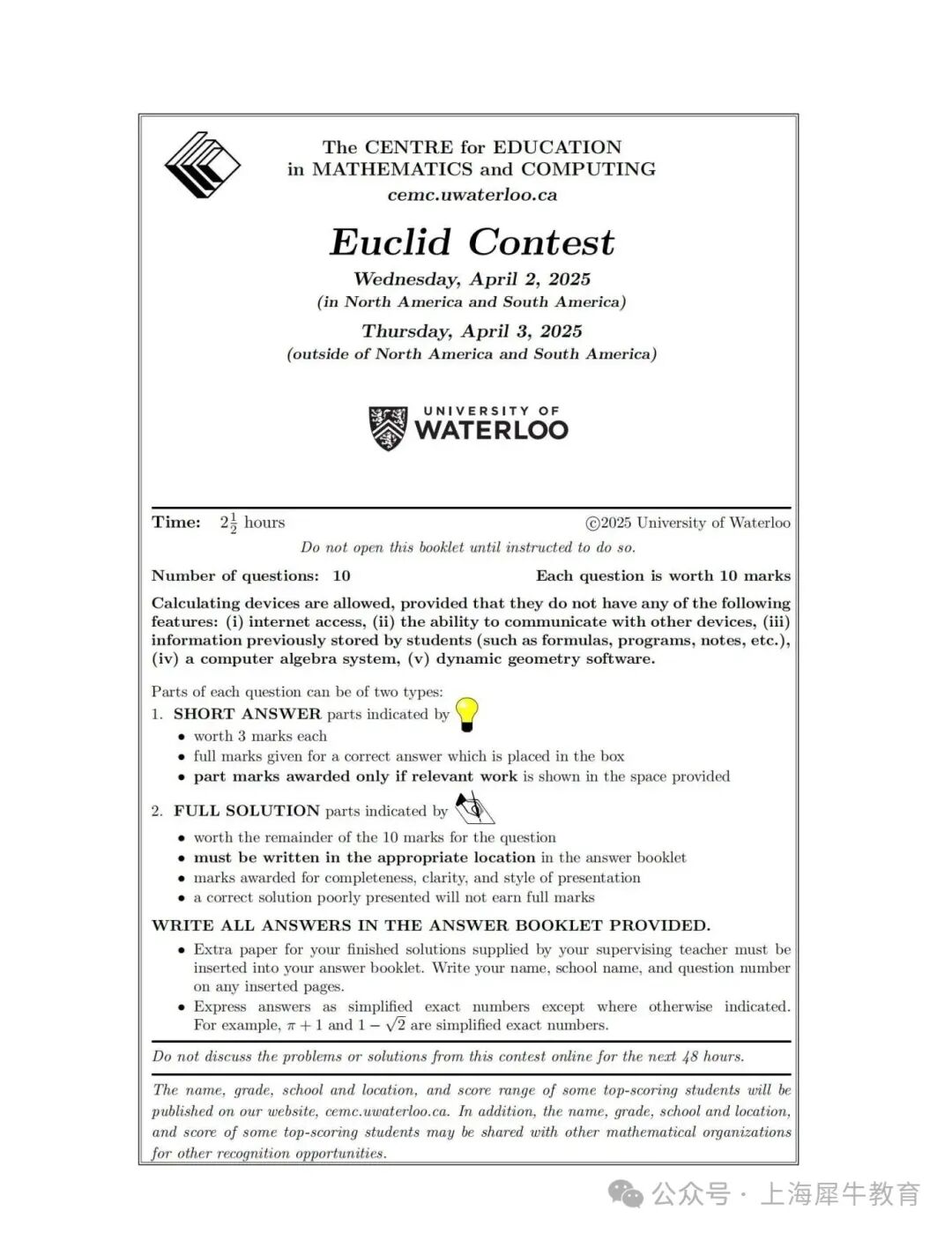 AMC10竞赛(110H):与AMC10培训全程班学习内容和节奏基本一致。