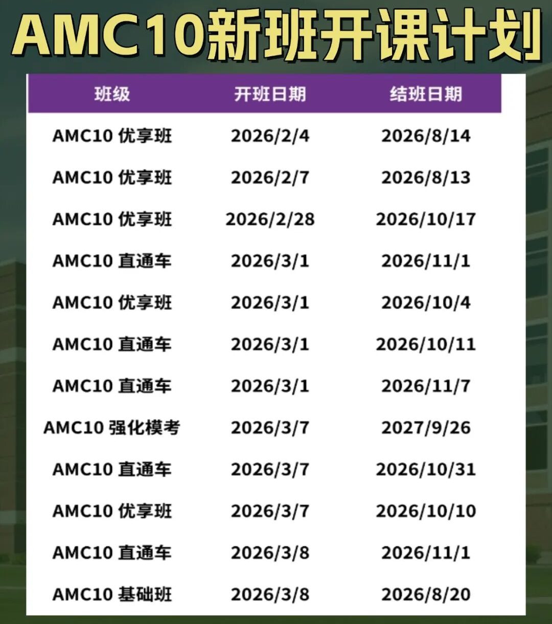 🔥AMC10基础班设置: