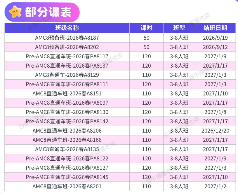 基础班:适合AMC8零基础或校内数学中等偏下的学生,重点夯实四大模块的基础知识