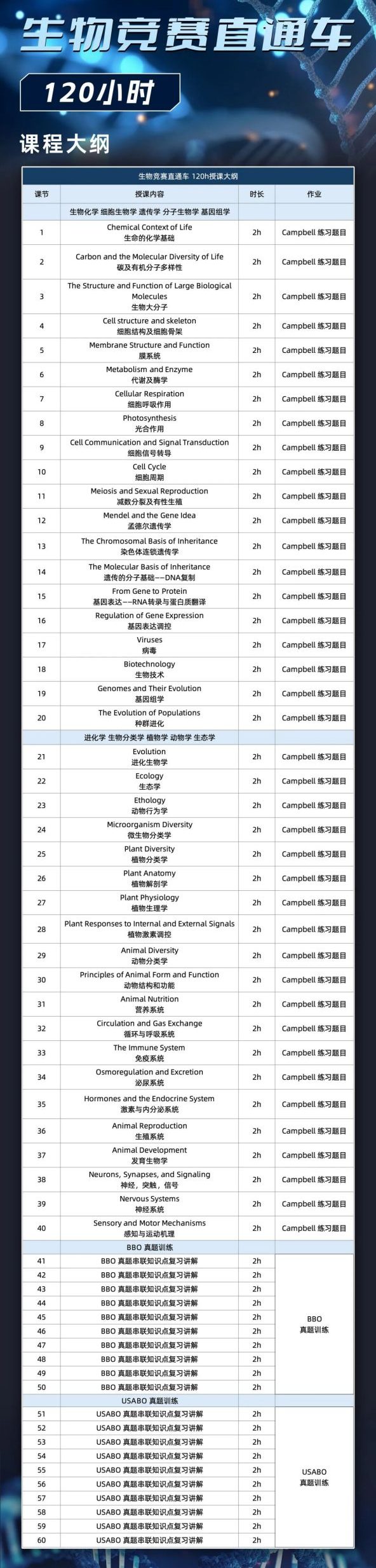 ●系统备战USABO,补充生物化学、分子遗传学、生物信息学等新增知识点。
