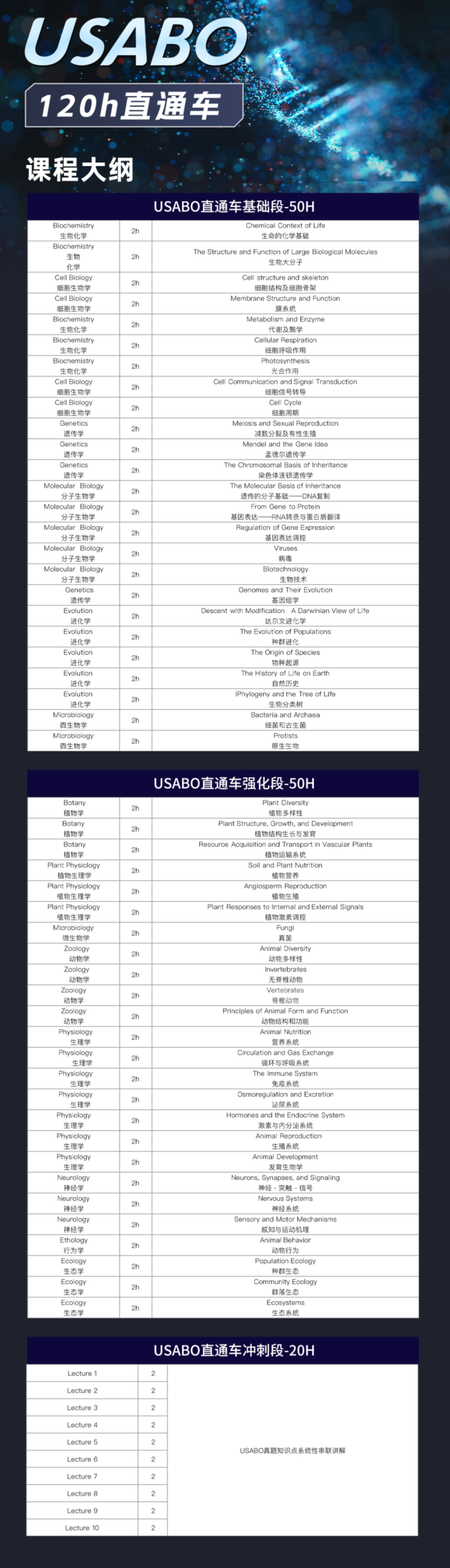 对于想要提前接触竞赛或者基础还不错的学生,可以重点关注USABO直通车课程