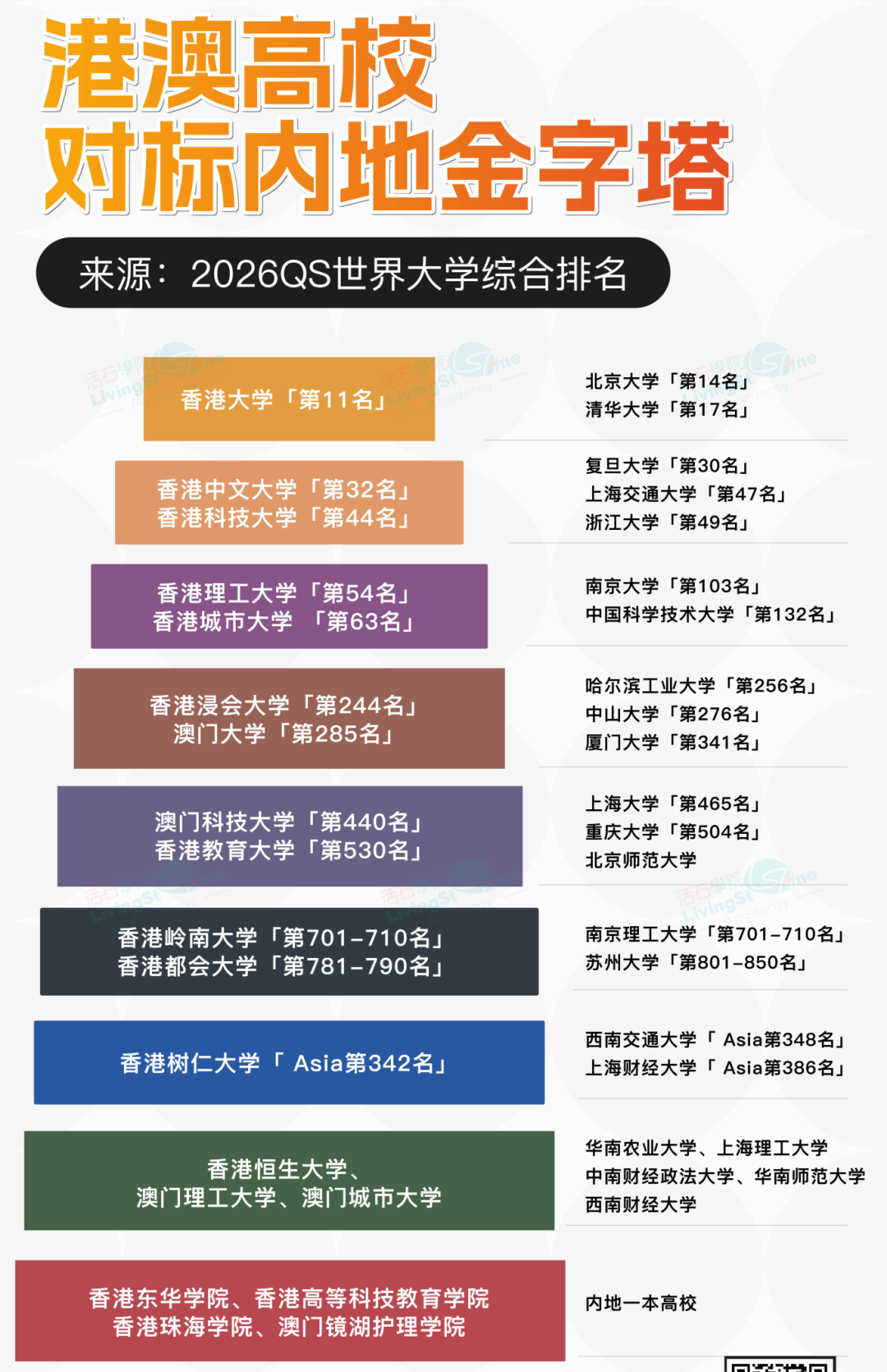 港六、港七、港八即:香港浸会大学、香港岭南大学、香港教育大学。