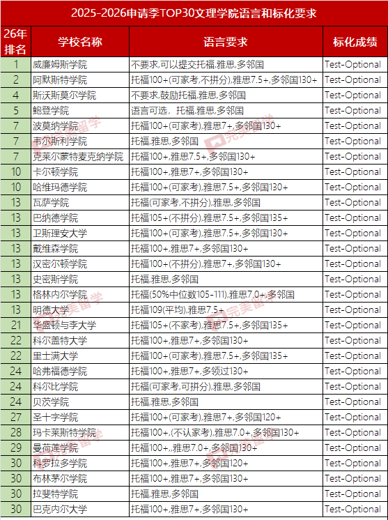 前天和大家分享了2025-2026申请季TOP50美国大学申请截止时间后,今天继续给大家分享综合大学前50和文理学院前30的语言和标化成绩要求,需要的家长收藏!