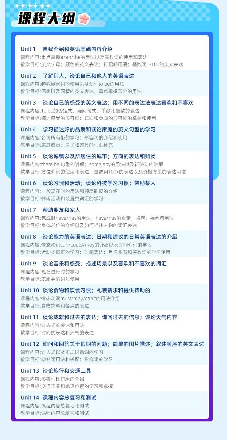 怎么学:24 节正课共 48 课时,每次上课 2 小时,节奏不赶不催。重点帮娃积累基础词汇(如日常场景词汇)、练简单英文表达,先培养英语兴趣,再慢慢过渡到 KET 考点。