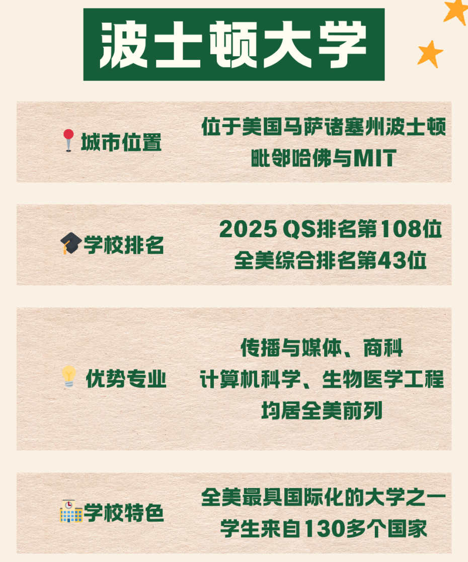 波士顿大学(Boston University,简称 BU)成立于1839年,是美国最早实行男女同校的大学之一。作为全美顶尖私立研究型大学,它在 2025 QS世界排名第108位,U.S. News全美排名第43。