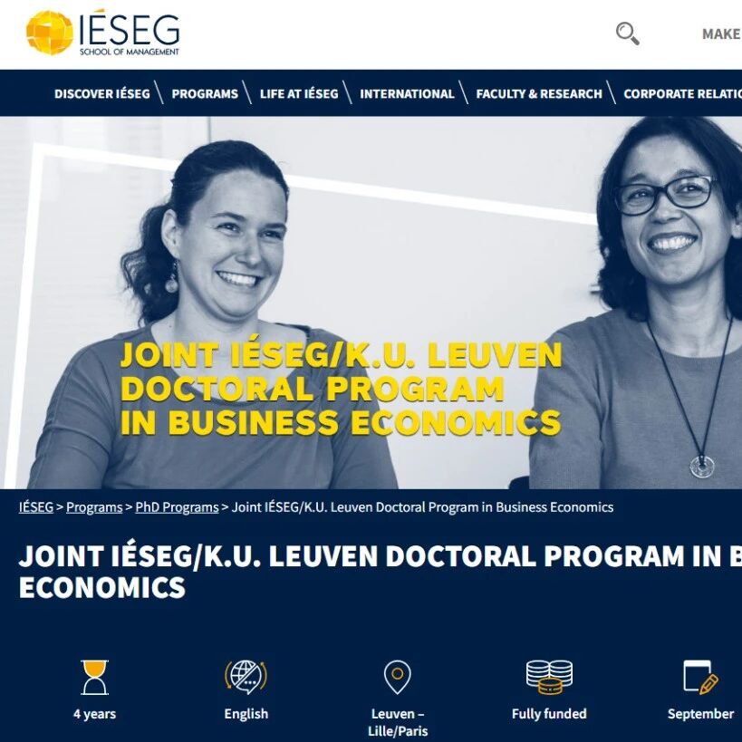 - 全额资助(FP):为期5年(或4年)的资助,包括为期2年(或1年)的硕士优秀奖学金(每年10,000欧元)和为期3年的博士资助承诺(3年总资助额至少为82,800欧元);
