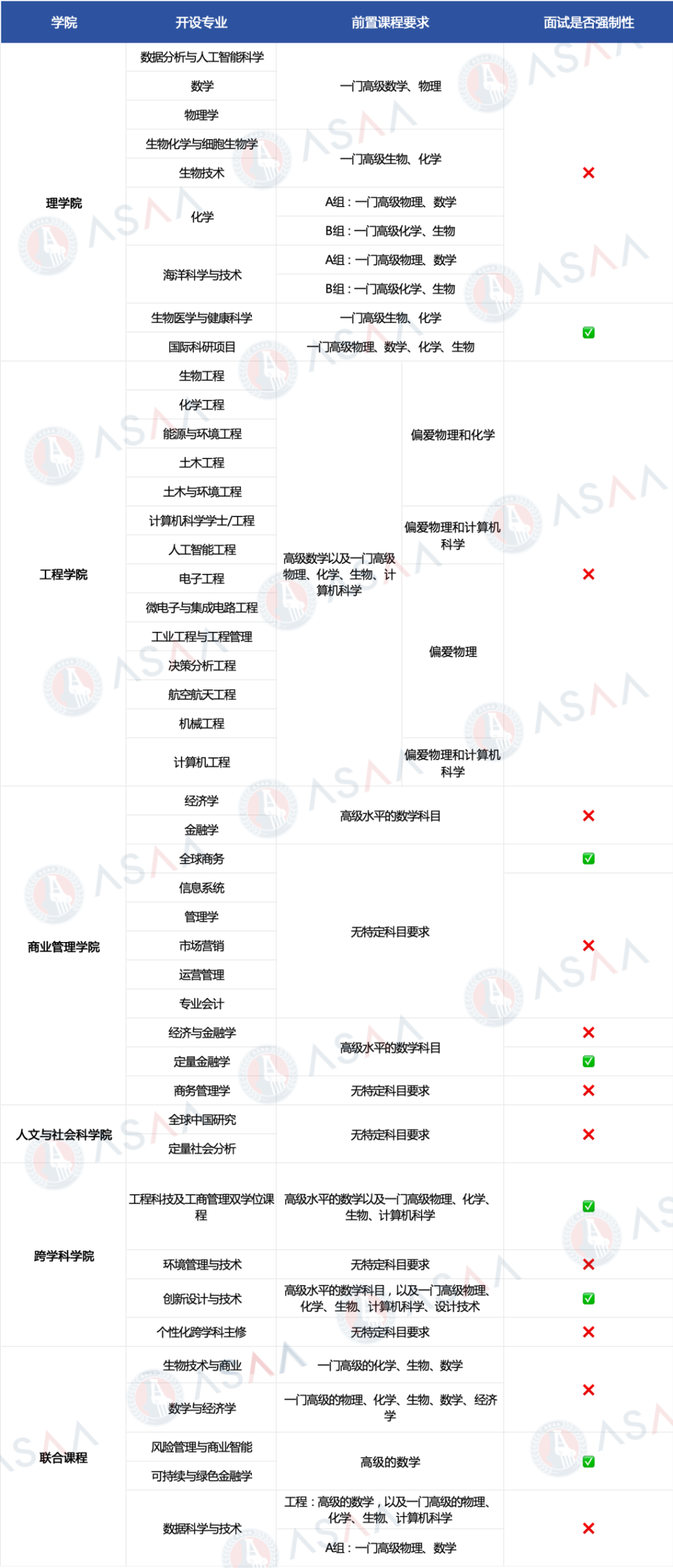 所有国际申请人都要高中毕业,并要满足基本入学要求(General Admissions Requirements)、特定专业前置课程要求(Subject-specific Requirements/ Interview)和英语语言要求(English Language Requirements)。