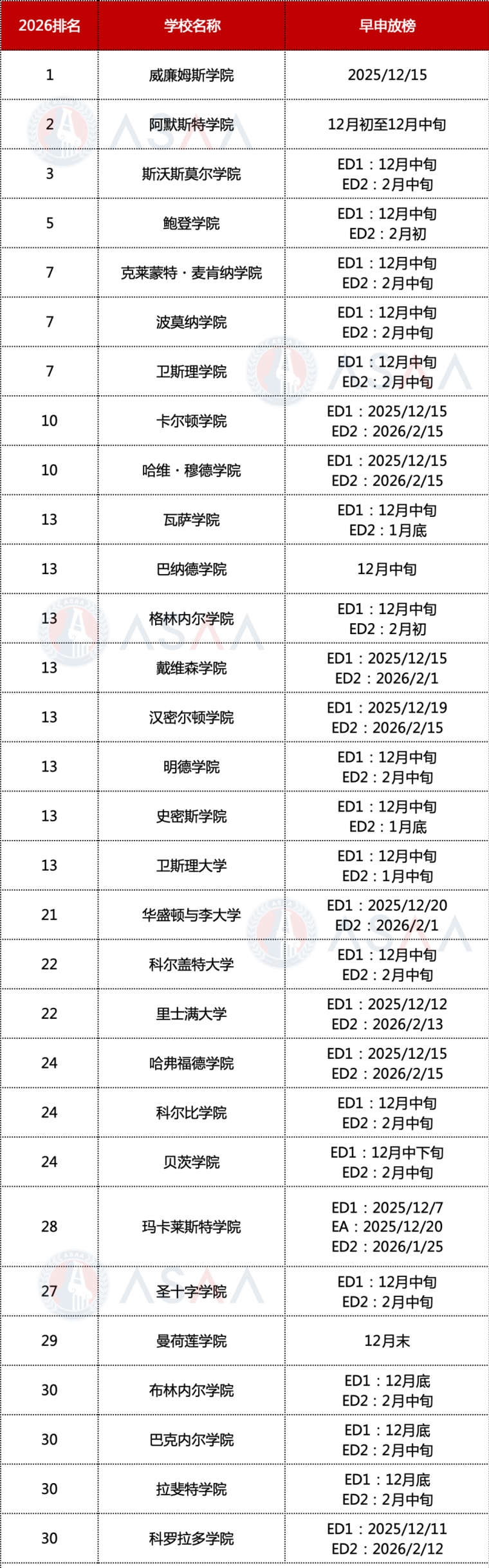 我们也根据各大院校最新放榜消息,为同学们整理了全美前50综合性大学以及全美前30的文理学院早申放榜日期!