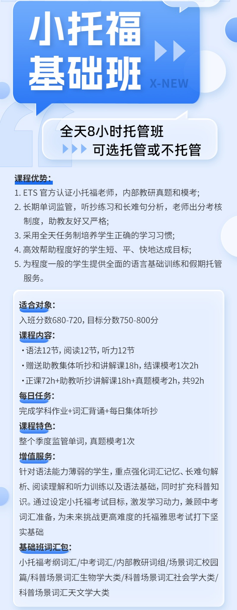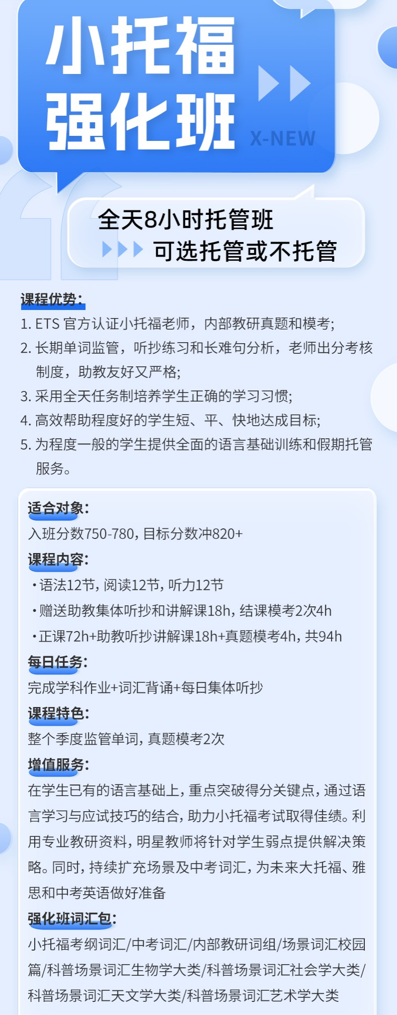- 海外美初 / 美高申请中,小托福 750 + 是基础门槛,ETS 官方背书、全球认可,成绩标准化,成为低龄留学的硬核语言证明。