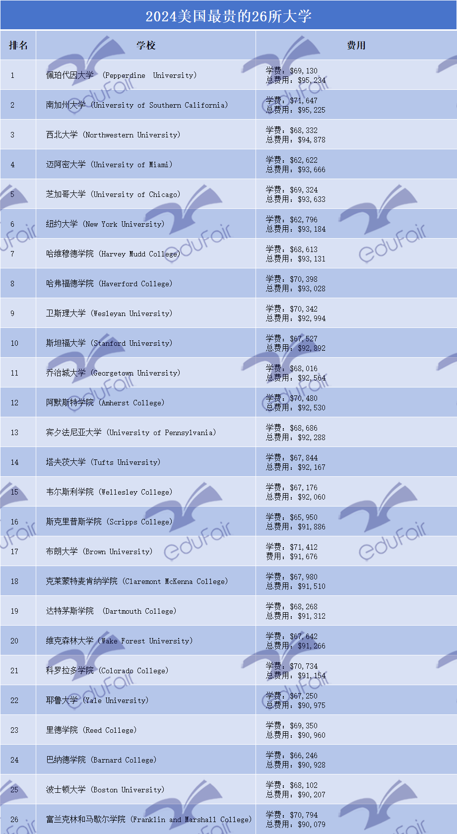 佩珀代因大学在今年的榜单中名列第一。该校的年度总费用接近$100,000(约合人民币72.8万),使其成为美国最昂贵的大学之一。