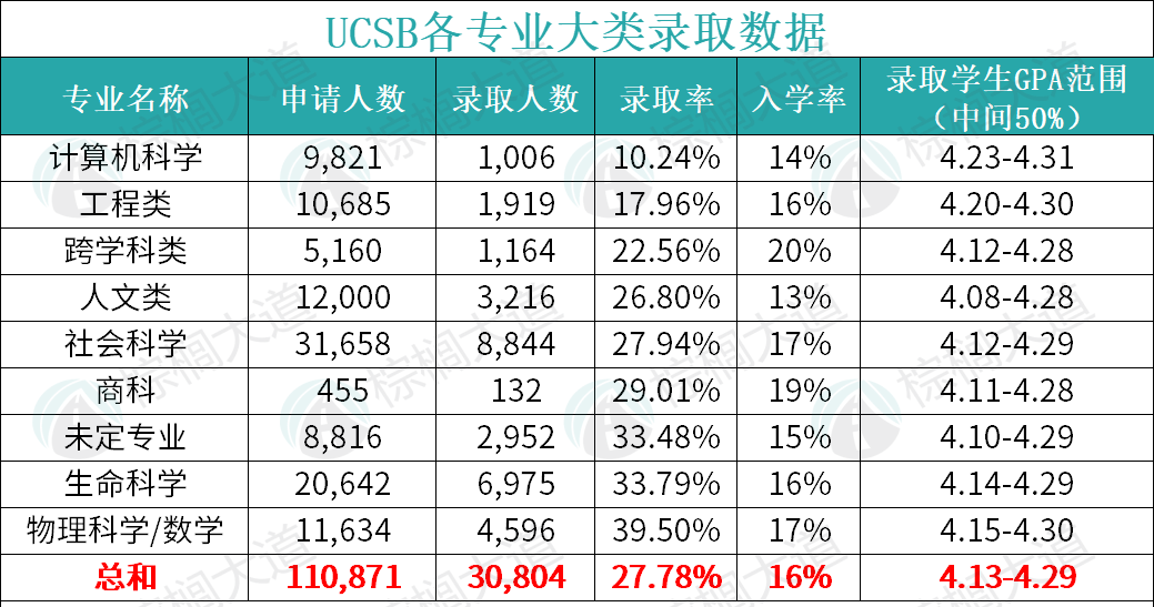 这三所UC分校相对而言文科更容易被“低分高录”,几乎每年机构都有GPA低于3.5分的学生被录取。
