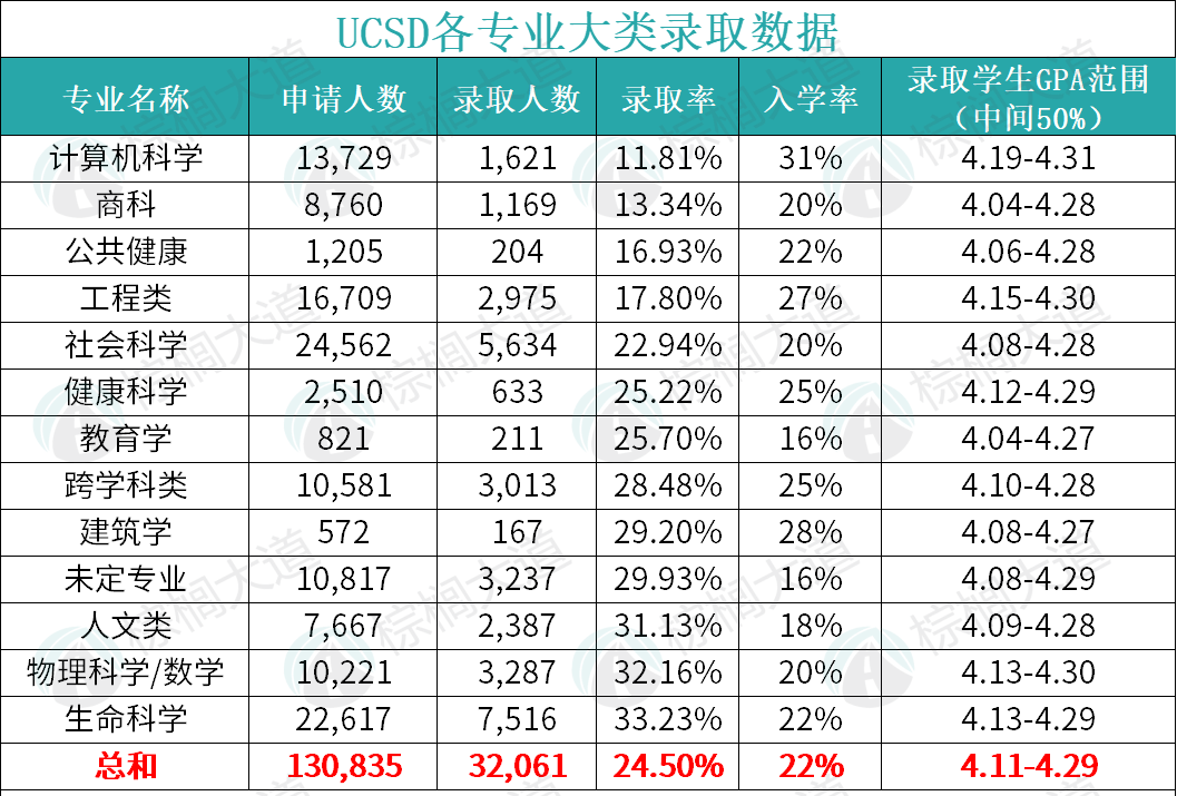 UCSD:2025 Fall总录取率28.4%,国际生录取率30.58%,州外学生录取率39.37%,州内学生录取率24.69%。